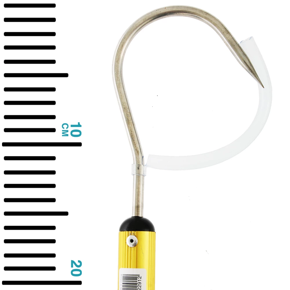 The Anglers Mate Alloy Gaff is made from gold anodised alloy with a 100mm gape stainless steel hook. It is fitted with a rubber handle and lanyard.